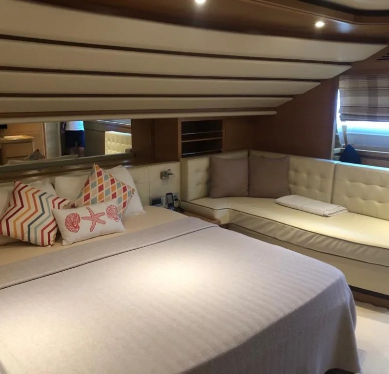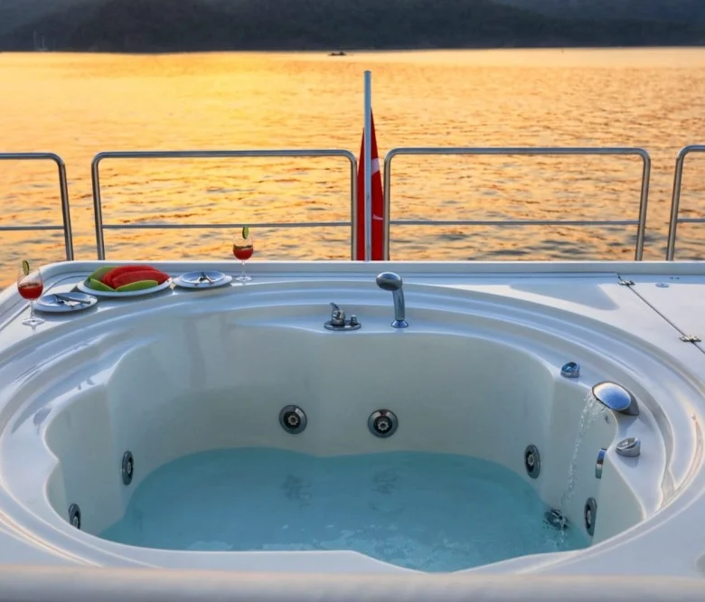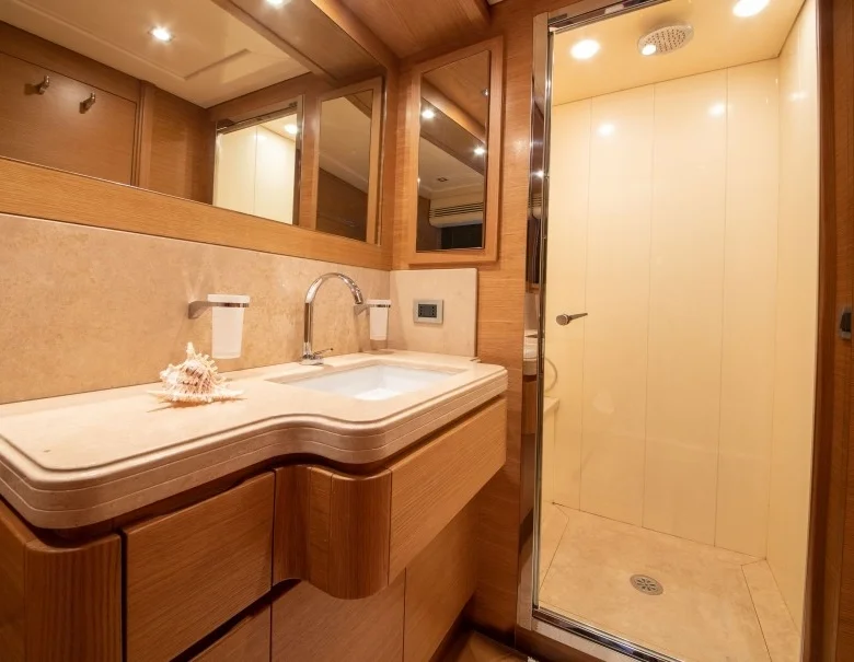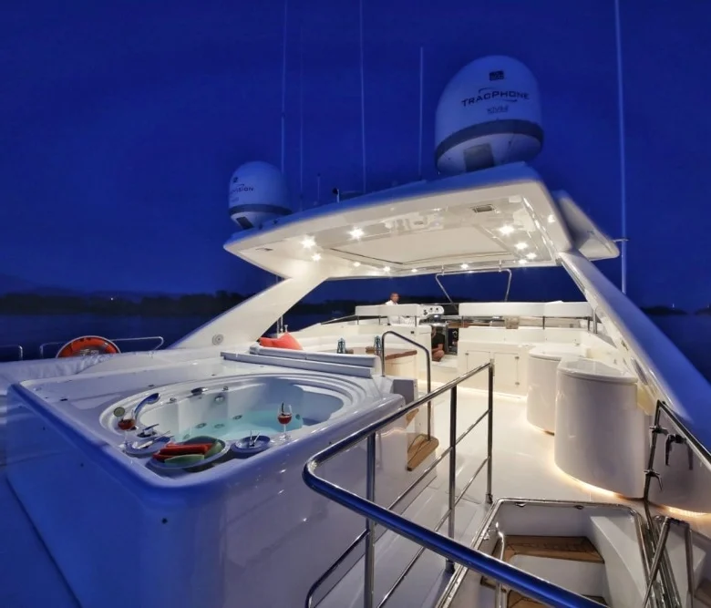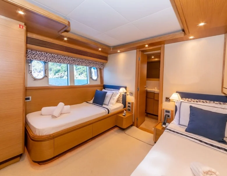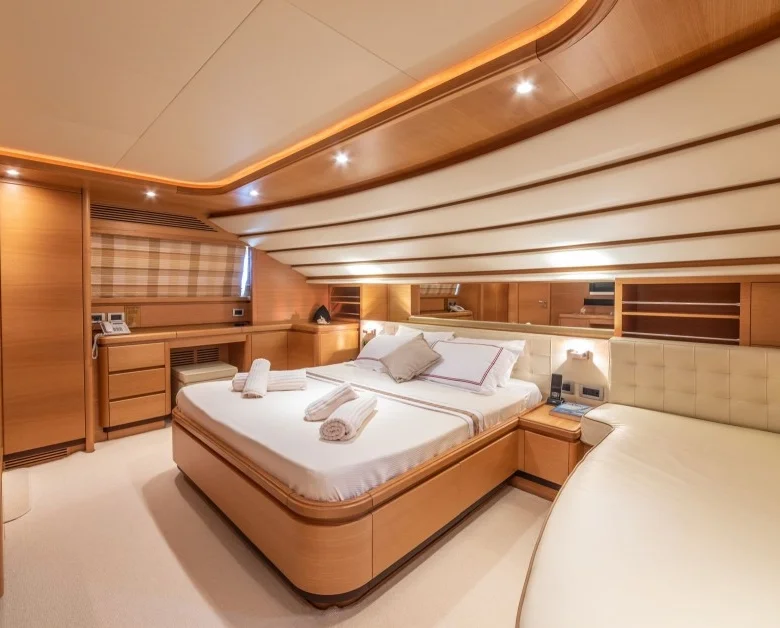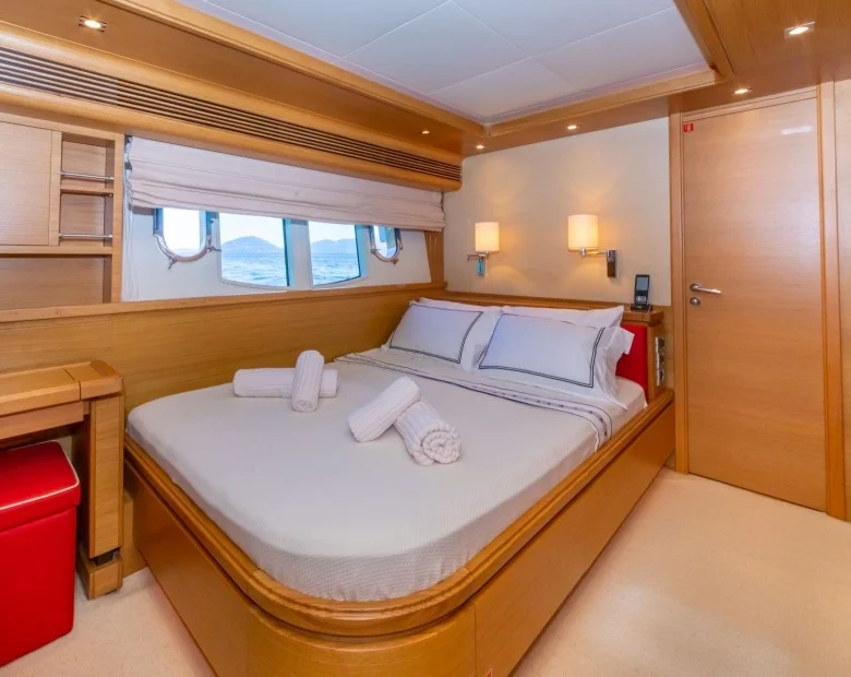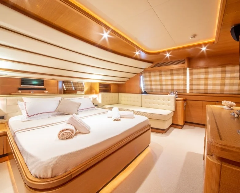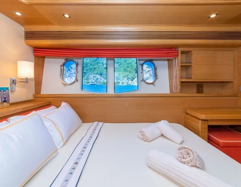 Ayrıca teknede LCD TV, DVD, müzik sistemi ve WiFi mevcuttur.