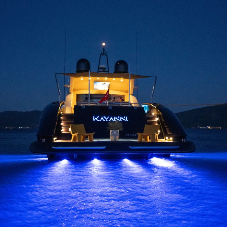 KAYANNI, 2025 yılında yenilenmiş 35 metrelik lüks bir motoryattır. Ege ve Akdeniz kıyılarında üst segment bir yat kiralama deneyimi sunmak üzere tasarlanmıştır.