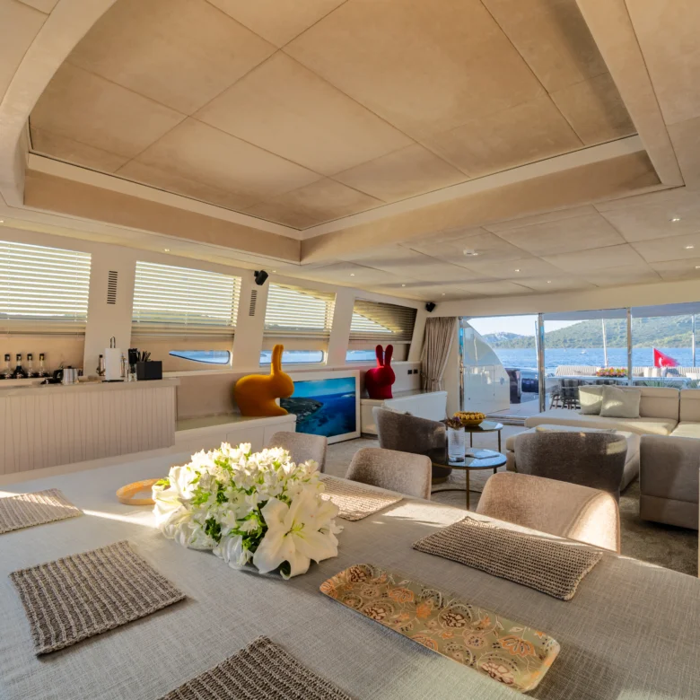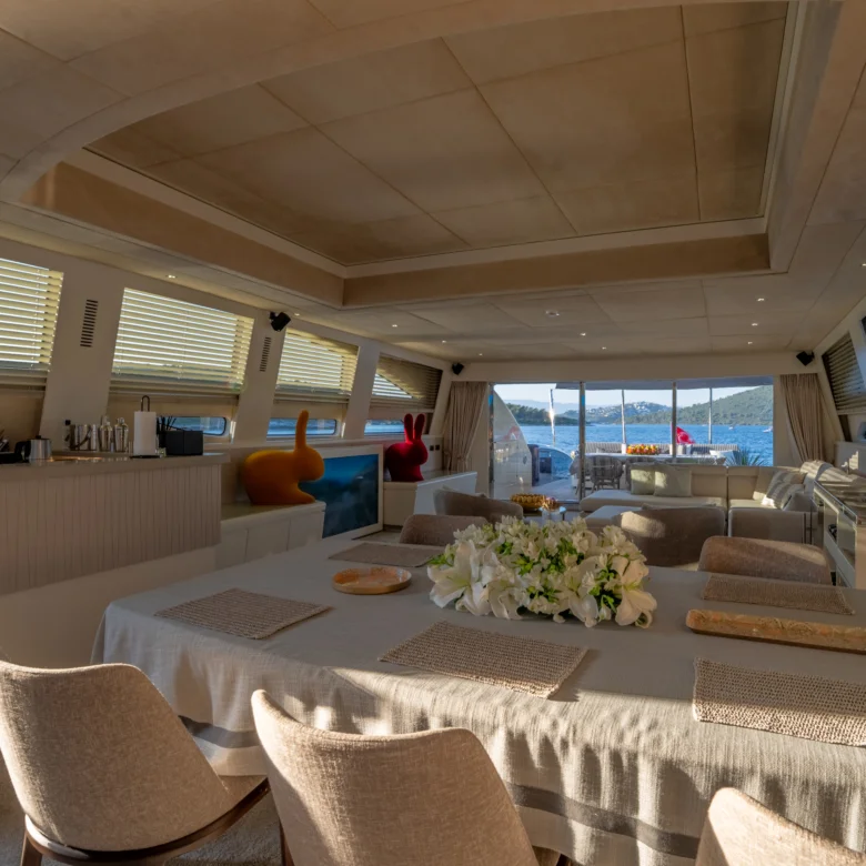 Teknede paddleboard, su kayağı, snorkel ekipmanları, servis botu, yüzme platformu ve WiFi bulunmaktadır.