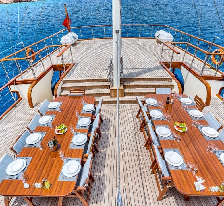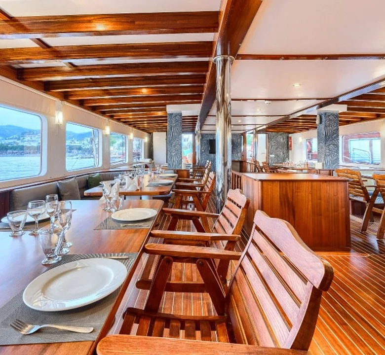 Profesyonel mürettebat, yolculuk boyunca misafirlere özenli hizmet sunarak keyifli bir tatil deneyimi yaşatır.