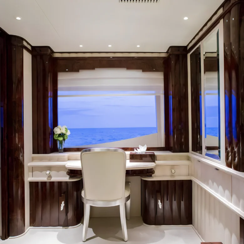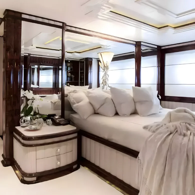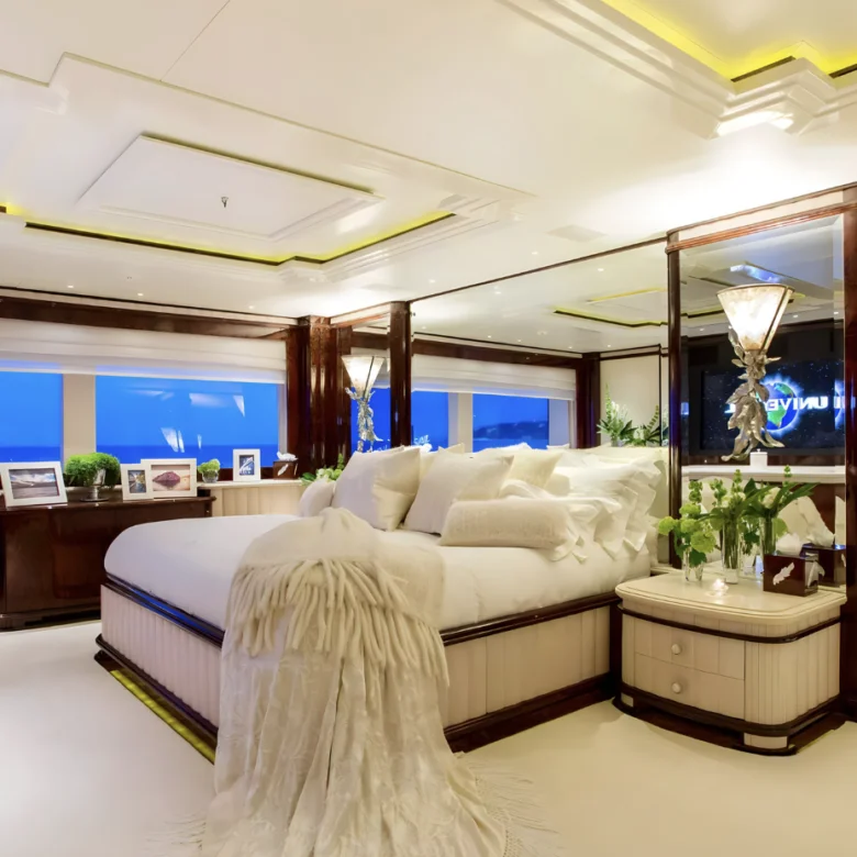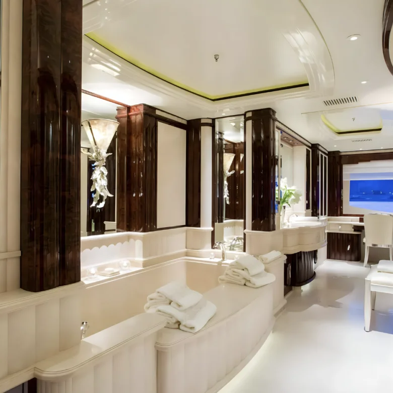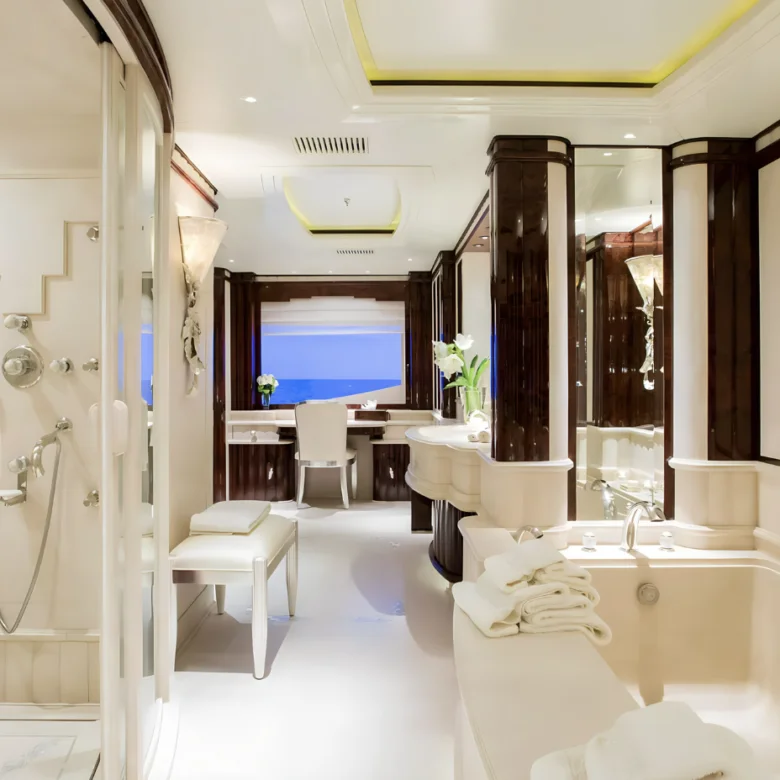 Ana güvertede bulunan master kabin; çalışma alanı, giyinme odası ve özel banyolar ile maksimum konfor sunar.