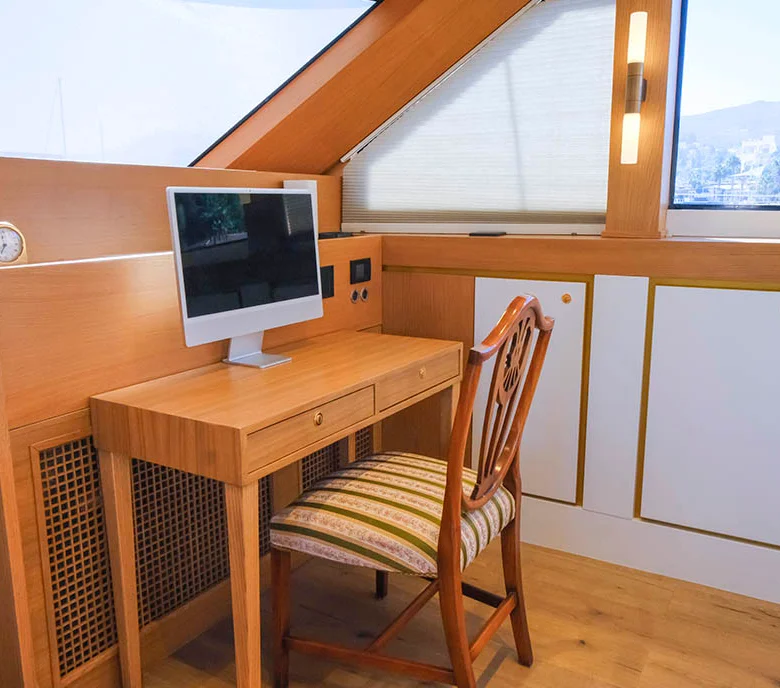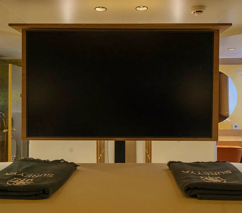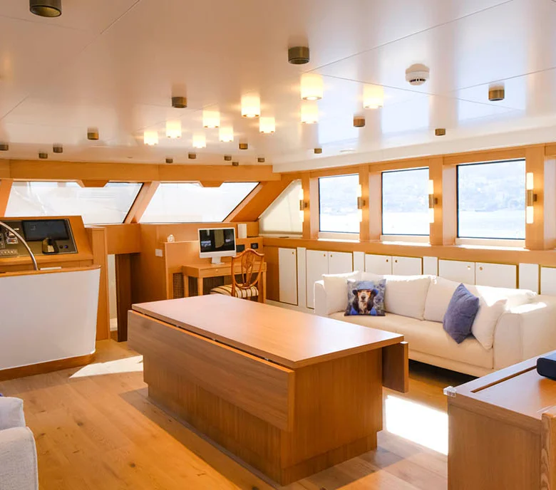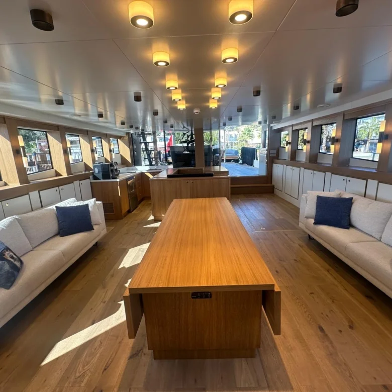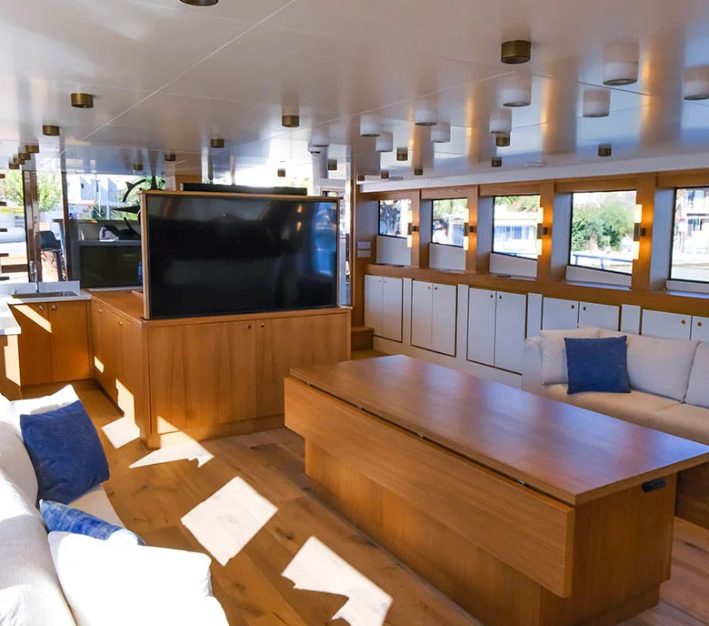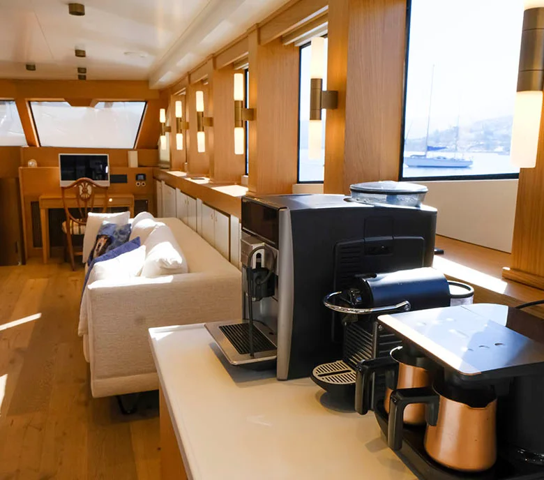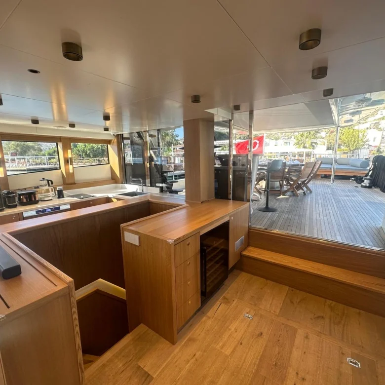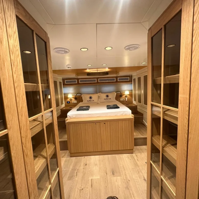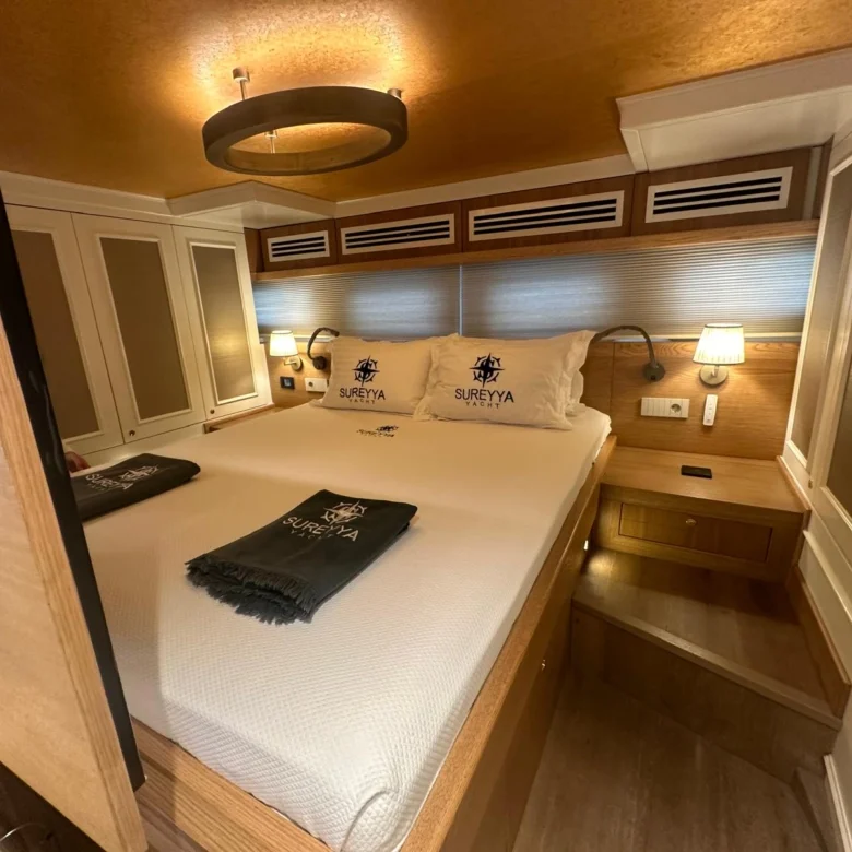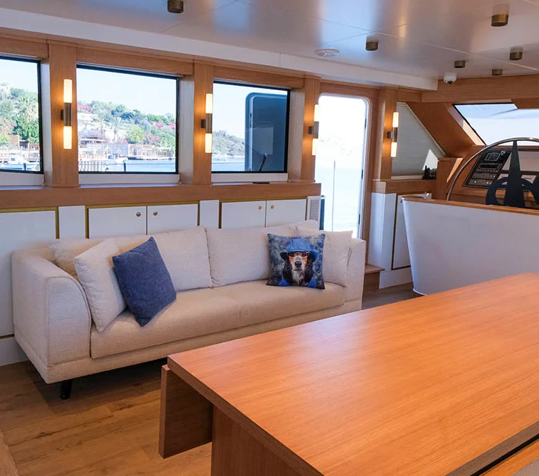 Klasik gulet tarzı ile modern konforu birleştiren iç mekanlarda klima ve Wi-Fi bulunmaktadır.
