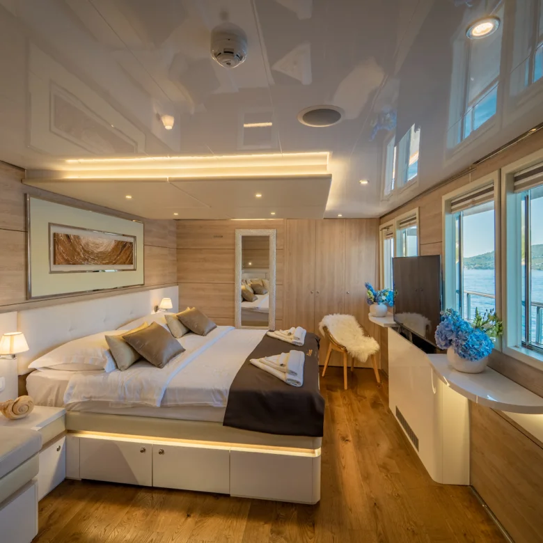 Geniş güverte alanları, klasik tasarımı ve modern donanımları ile keyifli ve konforlu bir tatil sunar.